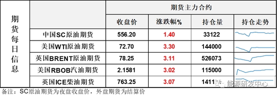 【1】WTI主力原油期貨收漲2.32美元,漲幅3.3%,報(bào)72.7美元/桶;布倫特主力原油期貨收漲2.36美元,漲幅3.11%,報(bào)78.25美元/桶;INE原油期貨收漲1.4%,報(bào)556.2元。