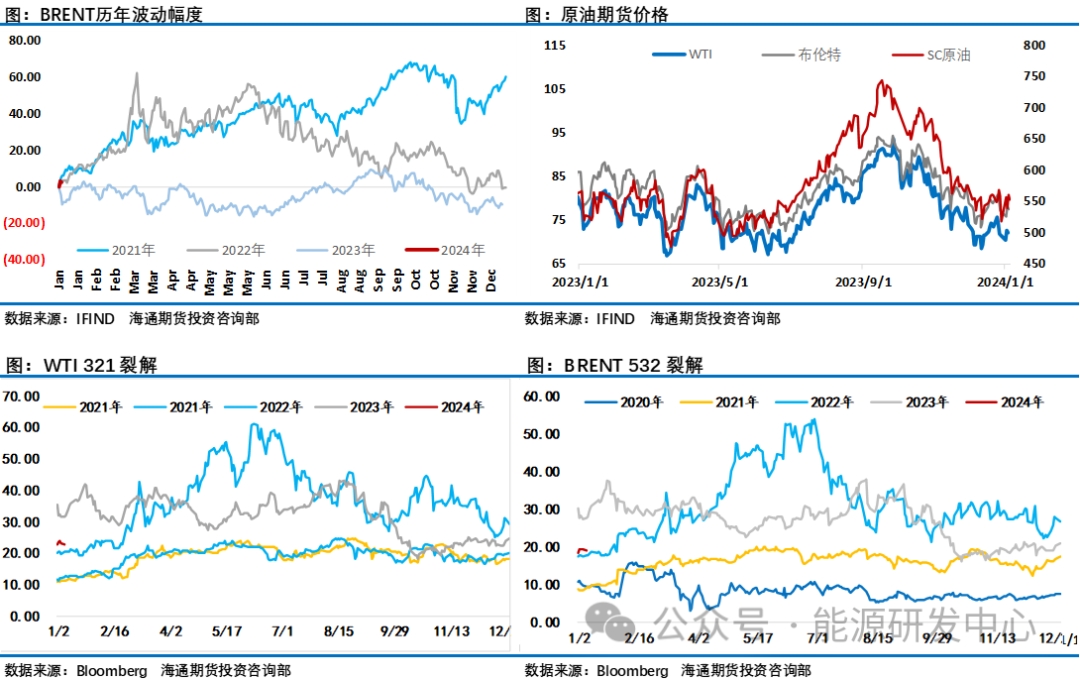 周五晚間美國(guó)非農(nóng)數(shù)據(jù)的強(qiáng)勁表現(xiàn),使得金融市場(chǎng)對(duì)美聯(lián)儲(chǔ)3月開始降息的預(yù)期發(fā)生動(dòng)搖。目前,美聯(lián)儲(chǔ)3月降息的概率已降至53.8%,而在非農(nóng)數(shù)據(jù)公布前為60.4%。對(duì)于非農(nóng)數(shù)據(jù)的解讀引發(fā)了金融市場(chǎng)的的大幅震蕩,這同樣也影響到了油價(jià)的節(jié)奏,不過(guò)最終油價(jià)還是震蕩收漲,這也意味著投資者在權(quán)衡宏觀因素、地緣因素和供需層面的多重影響之后,還是選擇了押注現(xiàn)階段在歐佩克+自愿減產(chǎn)維持石油市場(chǎng)穩(wěn)定的努力下油價(jià)會(huì)震蕩上行。不過(guò)新年開始投資者預(yù)期先行變數(shù)較大,投投機(jī)凈多頭寸增減之間切換顯示現(xiàn)階段投資者信心并不充足,隨時(shí)可能受到各類影響因素的擾動(dòng),新年首周油價(jià)的大幅折返震蕩中上漲的表現(xiàn)預(yù)示油價(jià)反彈過(guò)程注定不會(huì)順利,注意節(jié)奏把握,控制好風(fēng)險(xiǎn)。