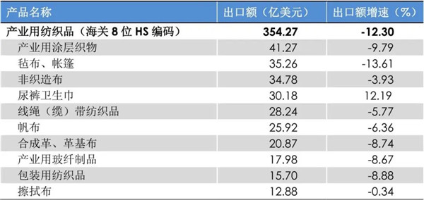 2023年1-11月產(chǎn)業(yè)用紡織品行業(yè)及主要產(chǎn)品出口情況
