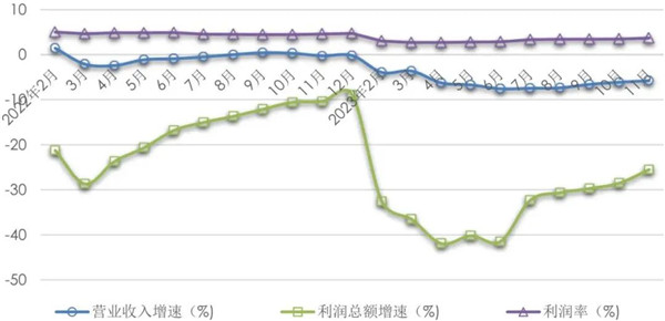 2023年1-11月產(chǎn)業(yè)用紡織品行業(yè)主要經(jīng)濟指標增速