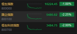 1月8日消息,港股高開低走,截至收盤,恒生指數(shù)(16224.449, -310.88, -1.88%)跌1.88%,報16224.45點(diǎn),恒生科技指數(shù)(3484.75, -107.58, -3.00%)跌2.99%,國企指數(shù)跌2.25%。盤面上,核心科技股普跌,美團(tuán)跌近5%,京東、小米跌近4%,網(wǎng)易跌超3%,快手、百度跌約2%,阿里、騰訊跌超1%;汽車股集體下跌,恒大汽車(0.39, -0.03, -6.02%)復(fù)牌跌超6%,小鵬、零跑跌超7%;內(nèi)險股萎靡,中國太保(15.1, -0.66, -4.19%)跌超4%;中資券商股齊挫,廣發(fā)證券(8.44, -0.55, -6.12%)跌超6%;半導(dǎo)體概念股跌幅靠前,中芯國際(17.82, -0.64, -3.47%)跌超3%;中醫(yī)藥股下挫,中國中藥(3.15, -0.71, -18.39%)跌超18%。