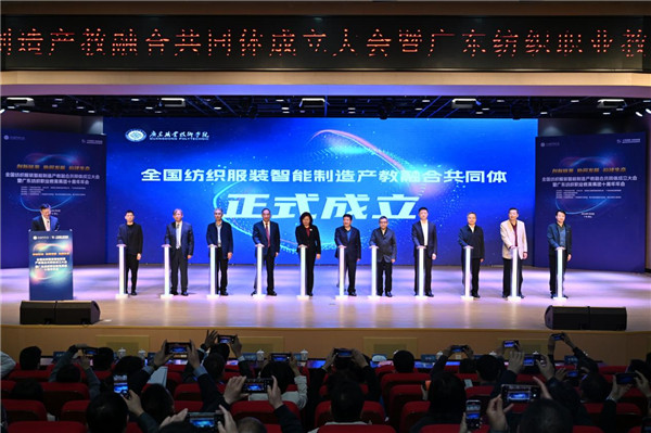 1月8日,“創(chuàng)新鏈條 協(xié)同發(fā)展 構(gòu)建生態(tài)”全國紡織服裝智能制造產(chǎn)教融合共同體成立大會在廣東職業(yè)技術(shù)學(xué)院高明校區(qū)舉辦。
