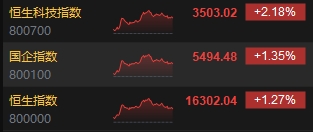 1月11日消息,港股三大指數(shù)止步開年七連跌,集體收漲,截至收盤,恒生指數(shù)(16302.04, 204.76, 1.27%)漲1.27%,報(bào)16302.04點(diǎn),恒生科技指數(shù)(3503.02, 74.82, 2.18%)漲2.18%,國企指數(shù)漲1.35%。盤面上,核心科技股普遍上漲,美團(tuán)漲超5%領(lǐng)銜,小米集團(tuán)、騰訊控股(287.4, 7.20, 2.57%)、阿里巴巴漲超2%,京東、快手、網(wǎng)易跟漲;汽車股齊漲,長城汽車(9.43, 0.46, 5.13%)漲超5%;醫(yī)藥外包概念股全天強(qiáng)勢(shì),藥明生物(30.45, 2.45, 8.75%)漲近9%;半導(dǎo)體概念股漲幅靠前,中芯國際(17.74, 0.52, 3.02%)漲超3%;現(xiàn)貨ETF獲批上市,區(qū)塊鏈股午后漲幅擴(kuò)大,雄岸科技(0.076, 0.02, 33.33%)一度飆漲43%;焦煤現(xiàn)貨價(jià)格回調(diào),煤炭股普遍下跌,中國神華(27.8, -0.85, -2.97%)跌近3%。