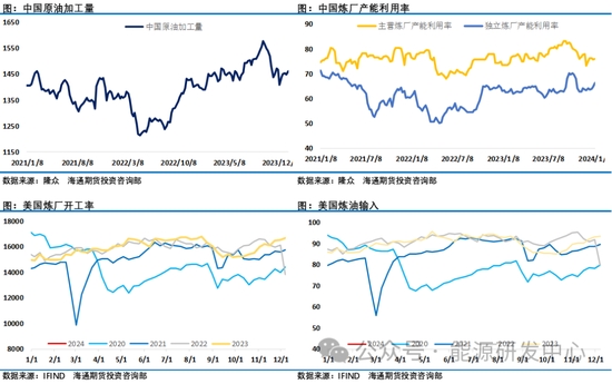 站在年初這個(gè)時(shí)點(diǎn)對(duì)全年供需演繹具有很大變數(shù),尤其是當(dāng)前這個(gè)階段,一方面市場(chǎng)要關(guān)注歐佩克+減產(chǎn)執(zhí)行情況,同時(shí)還要關(guān)注中東地緣因素對(duì)供應(yīng)端的擾動(dòng)。前期紅海事件對(duì)石油運(yùn)輸影響相對(duì)有限,但隨著美國(guó)空襲也門之后,胡塞武裝警告也門的回應(yīng)即將到來(lái)。越來(lái)越多油輪公司暫停了紅海航線,伊朗扣押油輪之后,美國(guó)跟伊朗之間的摩擦也有升溫跡象,如果事件演繹擴(kuò)散到中東霍爾木茲海峽運(yùn)輸上,無(wú)疑會(huì)引發(fā)市場(chǎng)擔(dān)憂。后續(xù)密切關(guān)注地緣問(wèn)題是否會(huì)對(duì)供應(yīng)安全形成更大沖擊,這成為目前市場(chǎng)高度關(guān)注的風(fēng)險(xiǎn)點(diǎn)。
