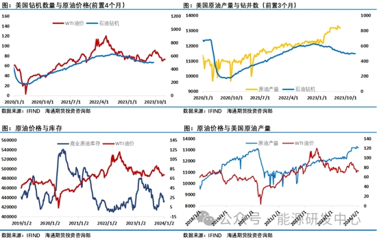 供應(yīng)端方面預(yù)計(jì)2024年美國(guó)原油產(chǎn)量為1321萬(wàn)桶/日,將增加29萬(wàn)桶/日,此前預(yù)期為1311萬(wàn)桶/日。預(yù)計(jì)2025年美國(guó)原油產(chǎn)量將增加23萬(wàn)桶/日,達(dá)到1344萬(wàn)桶/日。這兩項(xiàng)都將創(chuàng)下新紀(jì)錄。在油井效率提高的推動(dòng)下,未來(lái)兩年產(chǎn)量將繼續(xù)增長(zhǎng)。然而,由于活躍鉆機(jī)數(shù)量減少,增長(zhǎng)放緩。預(yù)計(jì)2024年歐佩克+原油產(chǎn)量將下降60萬(wàn)桶/日。隨著減產(chǎn)措施到期,歐佩克+2025年原油產(chǎn)量將增加70萬(wàn)桶/日。根據(jù)預(yù)測(cè),2025年圭亞那的石油產(chǎn)量將從2023年的40萬(wàn)桶/日增。非歐佩克+國(guó)家的產(chǎn)量增長(zhǎng)將從2023年的250萬(wàn)桶/日下降至2024年的110萬(wàn)桶/日,并在2025年進(jìn)一步降至80萬(wàn)桶/日。