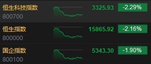 1月16日消息,港股三大指數(shù)持續(xù)走低,截至收盤,恒生指數(shù)(15865.92, 0.00, 0.00%)跌2.16%,失守16000關(guān)口,報(bào)15865.92點(diǎn),恒生科技指數(shù)(3325.93, 0.00, 0.00%)跌2.29%,國(guó)企指數(shù)跌1.9%。盤面上,核心科技股普跌,京東跌超3%,小米、騰訊、美團(tuán)、阿里巴巴跌超2%,百度逆勢(shì)上漲0.2%;內(nèi)房股跌幅居前,遠(yuǎn)洋集團(tuán)(0.34, 0.00, 0.00%)跌超8%領(lǐng)銜;造車新勢(shì)力多數(shù)下跌,零跑跌超3%;電訊服務(wù)板塊逆勢(shì)上漲,中國(guó)聯(lián)通(5.04, 0.00, 0.00%)、中國(guó)電信(3.89, 0.00, 0.00%)漲近1%;影視娛樂(lè)股大跌,樂(lè)華娛樂(lè)(1.27, 0.00, 0.00%)重挫近78%。