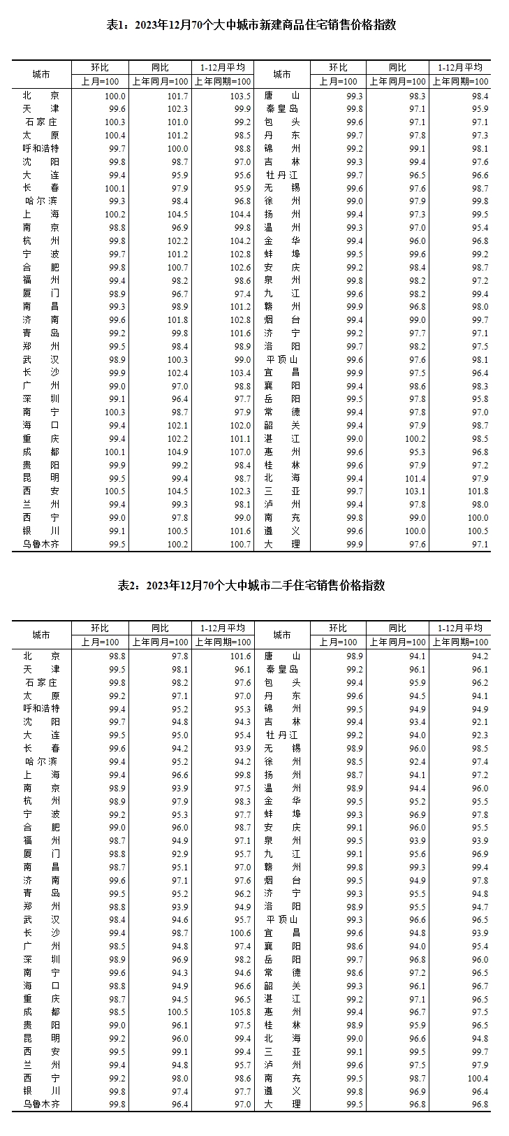 國(guó)家統(tǒng)計(jì)局17日公布數(shù)據(jù)顯示,2023年12月份,70個(gè)大中城市中,各線城市商品住宅銷售價(jià)格環(huán)比下降、同比有漲有降。