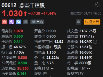 鼎益豐控股昨日大跌33%后今日反彈14.44%。消息面上,該公司早間澄清:“全體投資者重大利好通知”并非由公司發(fā)布。所謂利好通知的發(fā)布者(即“鼎益豐國際資產(chǎn)管理集團(tuán)”)并非公司的附屬公司或聯(lián)屬公司,而媒體所指的可疑商業(yè)行為與公司、其附屬公司或聯(lián)屬公司并無任何關(guān)系。據(jù)董事會所知、所悉及所信,其并不知悉導(dǎo)致有關(guān)下跌的任何原因。