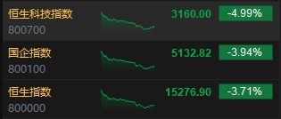 1月16日消息,港股三大指數(shù)持續(xù)下探,均刷新階段新低,截至收盤,恒生指數(shù)(15276.899, -589.02, -3.71%)跌3.71%,報15276.9點(diǎn),恒生科技指數(shù)(3160, -165.93, -4.99%)跌4.99%,國企指數(shù)跌3.94%。盤面上,核心科技股普跌,美團(tuán)跌近7%,時隔4年再度跌破發(fā)行價69港元,快手、京東跌超6%,小米跌近5%,阿里、百度跌約4%;汽車股重挫,蔚來、小鵬均跌超9%;互聯(lián)網(wǎng)醫(yī)療股跌幅靠前,阿里健康(3.2, -0.30, -8.57%)跌超8%;黃金股齊挫,山東黃金(12.16, -1.56, -11.37%)跌超11%;個股方面,繼昨日收跌近78%,樂華娛樂(1.15, -0.12, -9.45%)今日續(xù)跌9.45%,鼎益豐控股(1.03, 0.13, 14.44%)今日反彈14.44%。
