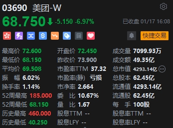 美團(tuán)跌近7%,時隔4年再度跌破發(fā)行價69港元。1月10日,美團(tuán)公告上市以來的首次回購,單日回購近4億港元。截至1月16日,美團(tuán)已連續(xù)5個交易日回購,合計近20億港元,同期僅次于騰訊,排名全部港股第二。多位券商分析師表示,美團(tuán)現(xiàn)階段被“低估”的核心原因,是公司正處于估值模式轉(zhuǎn)換期。在燒錢擴(kuò)張還被偏愛的那些年,資本市場通常會用SOTP(分部估值法)給予互聯(lián)網(wǎng)公司更高的估值,而隨著互聯(lián)網(wǎng)熱潮退去,更加注重公司整體盈利水平的PE(市盈率)估值成為主流。市場不僅不再為無邊界的擴(kuò)張買單,反而會“懲罰”那些影響公司盈利能力的業(yè)務(wù)。