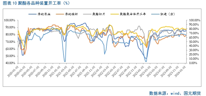 從后期來看,部分聚酯工廠存在計劃檢修,國內(nèi)聚酯行業(yè)供應(yīng)將將小幅下滑,裝置開工率或?qū)⒔抵?8%偏下的位置,因此對于上游PTA的邊際改善有限。