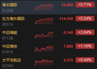 海運股齊漲,海豐國際漲5.71%。消息面上,航運巨頭馬士基的首席執(zhí)行官Vincent Clerc周三表示,紅海船只遇襲造成的全球航運中斷可能至少會持續(xù)幾個月。杰富瑞最近的一份研究報告稱,2023年,亞歐的平均運費約為1550美元/FEU,但現(xiàn)在翻了一番多,達到3500美元/FEU以上。截至目前,不少航運巨頭都已經(jīng)上調(diào)了2024年的盈利預(yù)期。