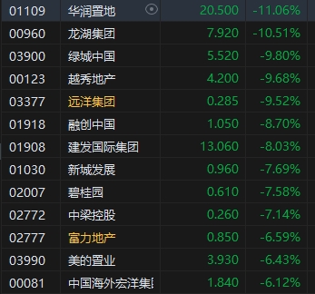內(nèi)房股領(lǐng)跌,華潤置地跌超11%。摩根大通發(fā)表研究報告指,對內(nèi)地房地產(chǎn)板塊維持謹慎立場,預(yù)計今年銷售量、新開工量及竣工量按年下降10%。城中村改造屬于緩解措施,雖然可支持建設(shè),但不一定能刺激銷售。然而,新開工率改善可能是復蘇的指標。該行表示,在內(nèi)房股中,首選仍然是華潤置業(yè)、中國海外發(fā)展(10.74, -0.66, -5.79%)和華潤萬象生活(20.8, -1.40, -6.31%)等國企,將龍湖的評級由增持下調(diào)至中性,目標價由22.5港元削至9港元。