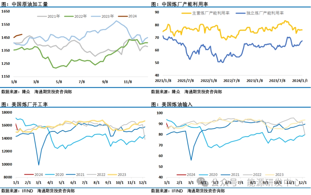 中國(guó)1月份原油加工量提升明顯,尤其是地方煉廠開工率持續(xù)走高,雖然帶來的充足供應(yīng)對(duì)國(guó)內(nèi)成品油市場(chǎng)形成壓制,但對(duì)上游原油市場(chǎng)需求提振明顯。另外通過EIA庫(kù)存數(shù)據(jù)可與看出石油市場(chǎng)降庫(kù)明顯這也進(jìn)一步給油價(jià)帶來支撐,油價(jià)最終也在供需層面明顯好轉(zhuǎn)之后啟動(dòng)上漲。