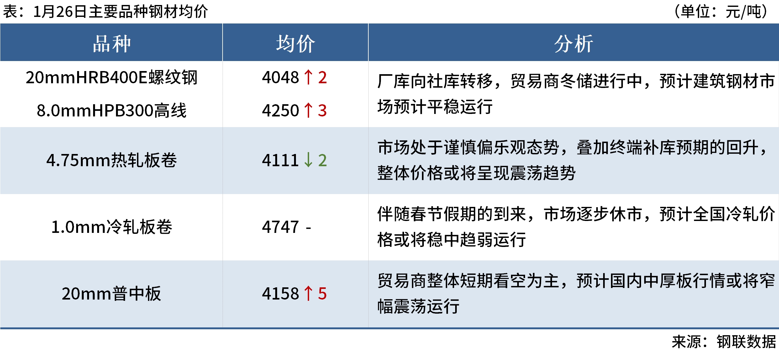 ◎1月26日,全國(guó)主港鐵礦(1003, 14.50, 1.47%)石成交73.05萬(wàn)噸,環(huán)比減35.1%;237家主流貿(mào)易商建筑鋼材成交5.71萬(wàn)噸,環(huán)比減22.5%。