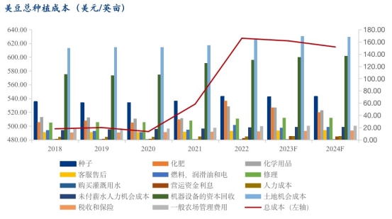 預(yù)計美國2024年大豆種植成本下降,但降幅有限