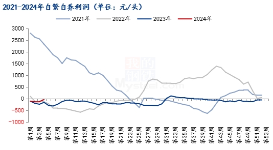 圖3 2021-2024年自繁自養(yǎng)利潤圖