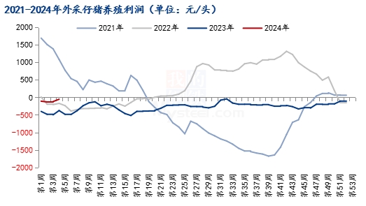 圖4 2021-2024年外采仔豬養(yǎng)殖利潤圖