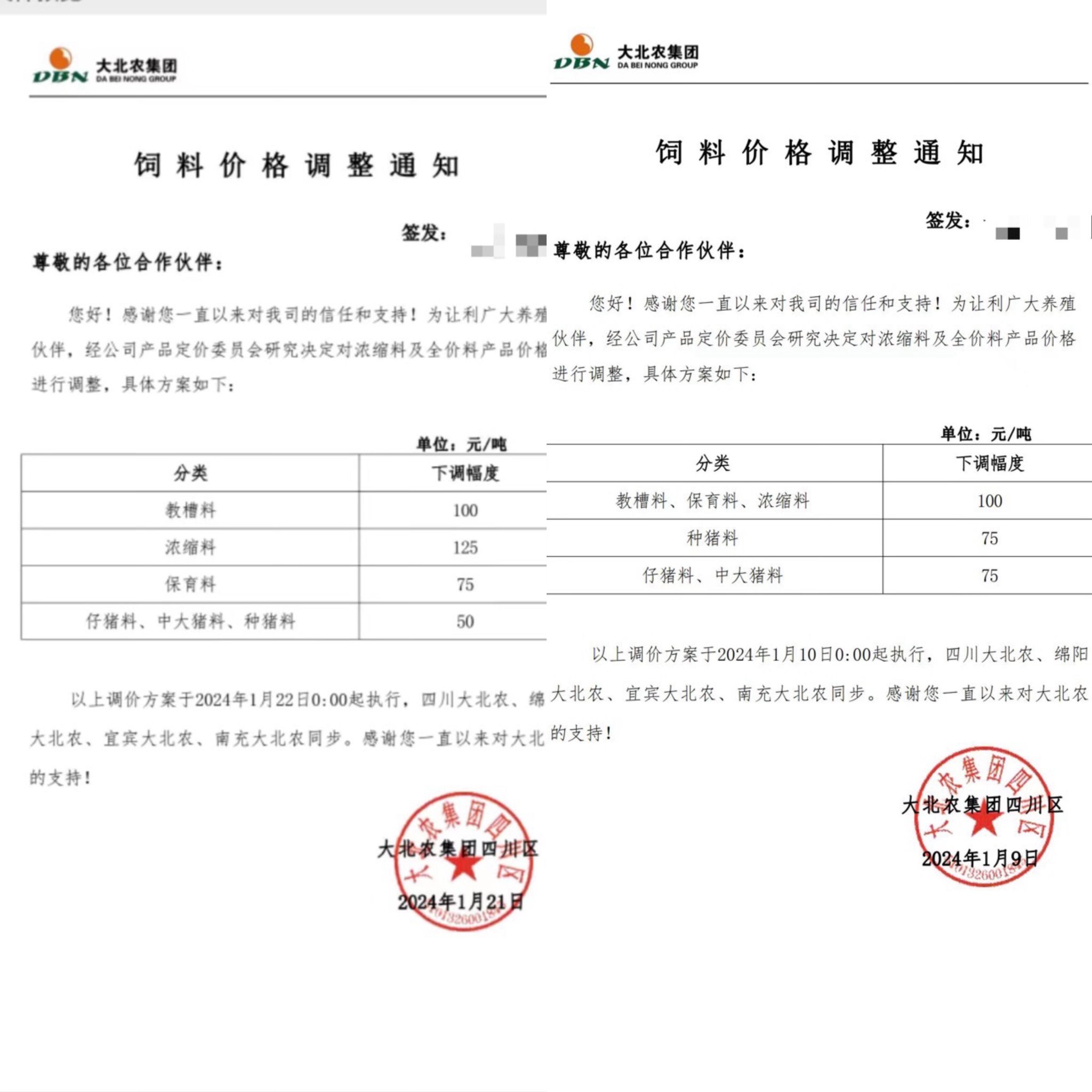 (大北農(nóng)本月兩次降價(jià)通知 圖片來(lái)源:受訪者)