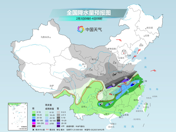中東部大范圍持續(xù)性雨雪冰凍天氣展開 雪線逐漸南壓
