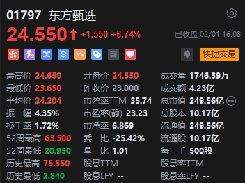個股方面,東方甄選(24.55, 0.00, 0.00%)漲近7%。昨晚,東方甄選及新東方發(fā)布聯(lián)合公告稱,新東方及俞敏洪各自已承諾以市價在聯(lián)交所購買合共價值7億港元的東方甄選股份。其中,新東方已承諾購買總值6.6億港元的東方甄選股份,在購入后將由新東方實益持有,俞敏洪已承諾購買總值4000萬港元的東方甄選股份,在購入后將由俞敏洪或其控制的法團(tuán)實益持有。