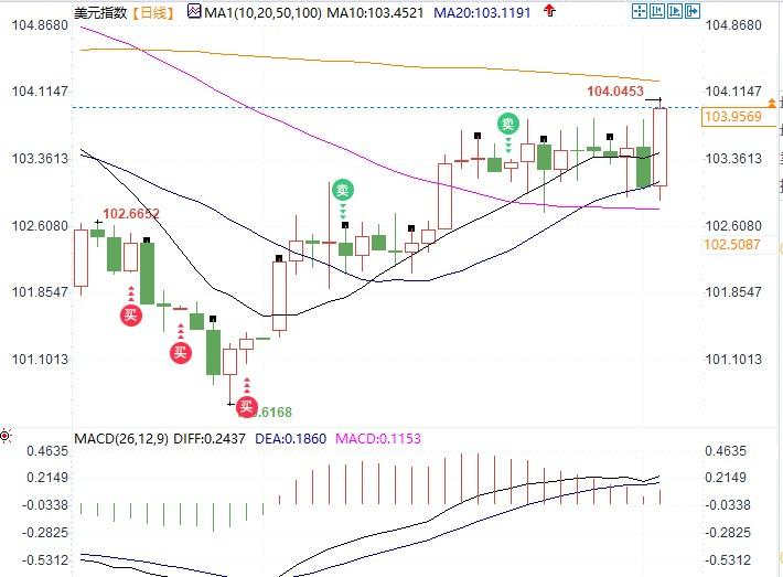 美元指數(shù)在周初小幅波動(dòng),周三美聯(lián)儲(chǔ)決議使其劇震超過100點(diǎn)。周四,由于市場(chǎng)預(yù)期5月降息幅度加大,美元指數(shù)受到?jīng)_擊,一度跌至103關(guān)口。然而,周五在強(qiáng)勁非農(nóng)數(shù)據(jù)的提振下,美元指數(shù)大幅反彈,成功扭轉(zhuǎn)了周線走勢(shì),日內(nèi)漲幅超過近百點(diǎn),最高觸及104.047,為7周來的最高水平,實(shí)現(xiàn)連續(xù)第5周上漲。