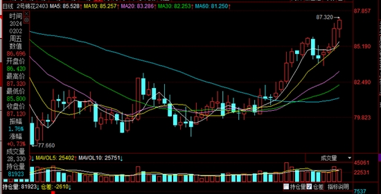 近兩個(gè)交易日,ICE期棉繼續(xù)飆升,周五,ICE3月棉花(16045, 35.00, 0.22%)期貨合約最高漲至87.32美分/磅,創(chuàng)2023年10月初以來新高。