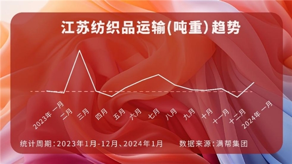 得益于線上銷售、智能制造及穩(wěn)定的產(chǎn)業(yè)鏈供應(yīng)鏈優(yōu)勢,2023年江蘇紡織產(chǎn)業(yè)表現(xiàn)亮眼。近日,滿幫發(fā)布紡織品貨運(yùn)數(shù)據(jù)報(bào)告顯示,2024年伊始,江蘇紡織品發(fā)貨噸數(shù)同比攀升44.5%,2023年全年同比上漲22.29%,紡織品運(yùn)出總貨重同比上升5.2%,實(shí)現(xiàn)“雙翼齊飛”。同時(shí),隨著貨運(yùn)物流發(fā)展,江蘇紡織品以“絲”為媒,千里“貿(mào)易”一“線”牽。如今,江蘇泰州的紡織品甚至運(yùn)到了5000多公里外的新疆阿里。