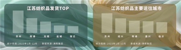 報(bào)告相關(guān)數(shù)據(jù)顯示,蘇州持續(xù)領(lǐng)跑江蘇紡織品發(fā)貨量和江蘇紡織品收貨城市榜單前五:發(fā)貨噸量遠(yuǎn)超省內(nèi)發(fā)貨第二、三名南通、無錫,是省內(nèi)發(fā)貨第四、五位的三倍;而在江蘇紡織品前往目的地榜單上,蘇州也是跑贏紹興、南通,幾乎是嘉興和臨沂兩地收貨量之和。