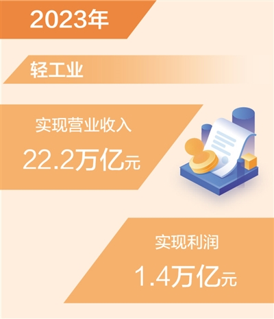 中國(guó)輕工業(yè)聯(lián)合會(huì)近日發(fā)布數(shù)據(jù)顯示,2023年我國(guó)輕工業(yè)實(shí)現(xiàn)營(yíng)業(yè)收入22.2萬(wàn)億元,同比增長(zhǎng)1.6%,實(shí)現(xiàn)利潤(rùn)1.4萬(wàn)億元,同比增長(zhǎng)3.8%。輕工業(yè)以占全國(guó)工業(yè)13.2%的資產(chǎn),實(shí)現(xiàn)了全國(guó)工業(yè)16.7%的營(yíng)業(yè)收入和18.1%的利潤(rùn),有力支撐工業(yè)經(jīng)濟(jì)穩(wěn)定發(fā)展。