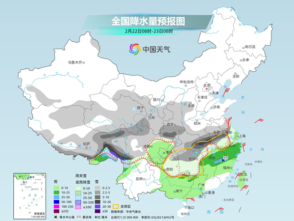 今明天(2月22日至23日),我國雨雪有所減弱,雨雪分界線繼續(xù)南壓。后天,北方大部降雪基本停歇,而南方陰雨雪天氣還將持續(xù)到本月底,需注意防范雨雪冰凍對春運出行的不利影響。雨雪壓制下,南方大部氣溫偏低的狀態(tài)將延續(xù)至27日前后,北方大部今起緩慢升溫。