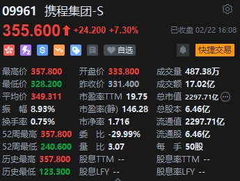 旅游股集體上漲,攜程集團漲超7%。2月22日,攜程集團公布其2023年第四季財報和全年財務業(yè)績。第四季度,公司凈營業(yè)收入103億元,2023全年凈營業(yè)收入445億元,同比分別增長105%、122%。全年來看,攜程2023年收入為445億元,同比上升122%,已超疫情之前2019年的總收入;歸母凈利潤99億元,同比增加607.14%,業(yè)績超出市場預期。