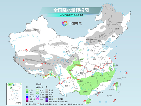 今天(2月27日),我國(guó)華北北部、東北等地有降雪出沒(méi),南方仍有較大范圍陰雨天氣,普遍以小雨為主。明后天,我國(guó)中東部地區(qū)雨雪將增多,西北地區(qū)東部、黃淮等地有小到中雪,江南等地部分地區(qū)有大雨,局地暴雨,需注意防范雨雪天氣對(duì)春運(yùn)出行的不利影響。氣溫方面,我國(guó)大部地區(qū)氣溫偏低的狀態(tài)將延續(xù)至3月初,3月2日至3日,北方到長(zhǎng)江中下游大部地區(qū)氣溫才會(huì)明顯回升。