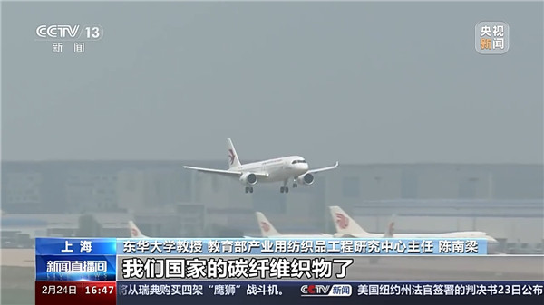 東華大學(xué)教授 教育部產(chǎn)業(yè)用紡織品工程研究中心主任 陳南梁:現(xiàn)在C919已經(jīng)用上我們國家的碳纖維織物了,C929的用量會更大。航天領(lǐng)域也很多,用碳纖維材料做成的這種剛性材料已經(jīng)非常普遍了。而柔性紡織材料的應(yīng)用現(xiàn)在才剛剛開始,所以我們講紡織科技也是有非常大的前景。