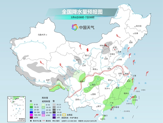 今天進入驚蟄節(jié)氣,中東部的雨雪天氣還將持續(xù)。中央氣象臺預(yù)計,5日至6日,華北西部和北部等地部分地區(qū)有小雪或雨夾雪;江淮、江漢、江南、華南大部、貴州東部等地有小到中雨。