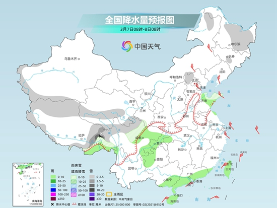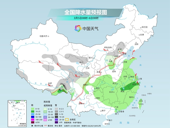 今天(3月5日)進入驚蟄節(jié)氣,中東部的雨雪天氣還將持續(xù),不過南方地區(qū)雨勢整體減弱,江南、華南等地部分地區(qū)有小到中雨,后天中東部這輪雨雪天氣將告一段落。氣溫方面,今明天在冷空氣的影響下,西北、華北、黃淮等多地氣溫將持續(xù)偏低,提醒公眾注意及時添衣保暖。