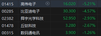 蘋果概念股跌幅居前,高偉電子跌超5%。此前花旗表示,根據(jù)本季至今對供應(yīng)鏈的調(diào)查及市場數(shù)據(jù),更新對蘋果公司(AAPL)的預(yù)測模式,并下調(diào)集團(tuán)至3月底季度的中國銷售預(yù)測約40萬件,按年跌幅由原來估計的下降17%,擴(kuò)大至跌21%,主要反映消費(fèi)者信心持續(xù)疲弱及使用國貨的風(fēng)氣興起。