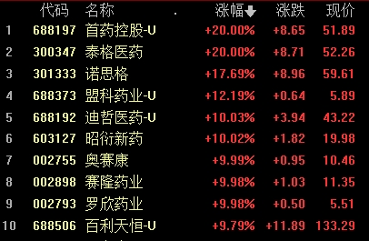 泰格醫(yī)藥、榮昌生物(56.000, 0.00, 0.00%)、迪哲醫(yī)藥(43.220, 0.00, 0.00%)、貝達(dá)藥業(yè)(46.940, 0.00, 0.00%)等多股活躍。