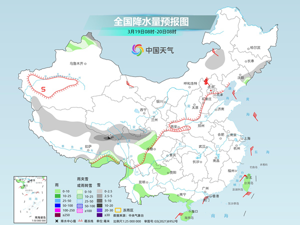 未來三天,南方降雨停歇,我國雨雪天氣主要出現在新疆、西藏以及東北、西南等地部分地區(qū)。具體來看,中央氣象臺預計,內蒙古中東部、吉林東部、遼寧東部、新疆北疆北部和北疆西部、西藏南部和東部、青海南部、川西高原北部等地部分地區(qū)有小到中雪或雨夾雪,其中,西藏東北部、青海南部等地局地有大雪(5~7毫米)。西藏東南部、川西高原、四川盆地西部、貴州西部、云南北部和南部、廣西南部、廣東西南部、海南島、臺灣島等地部分地區(qū)有小雨。