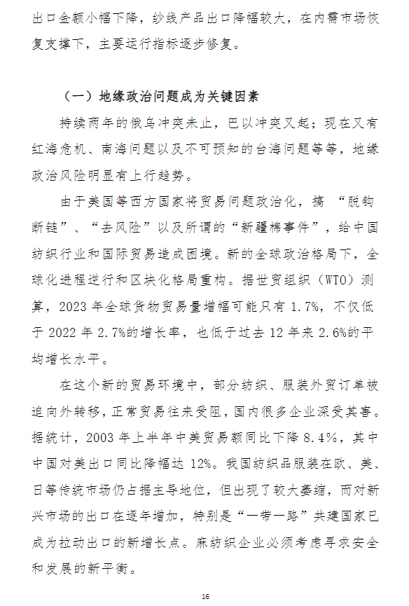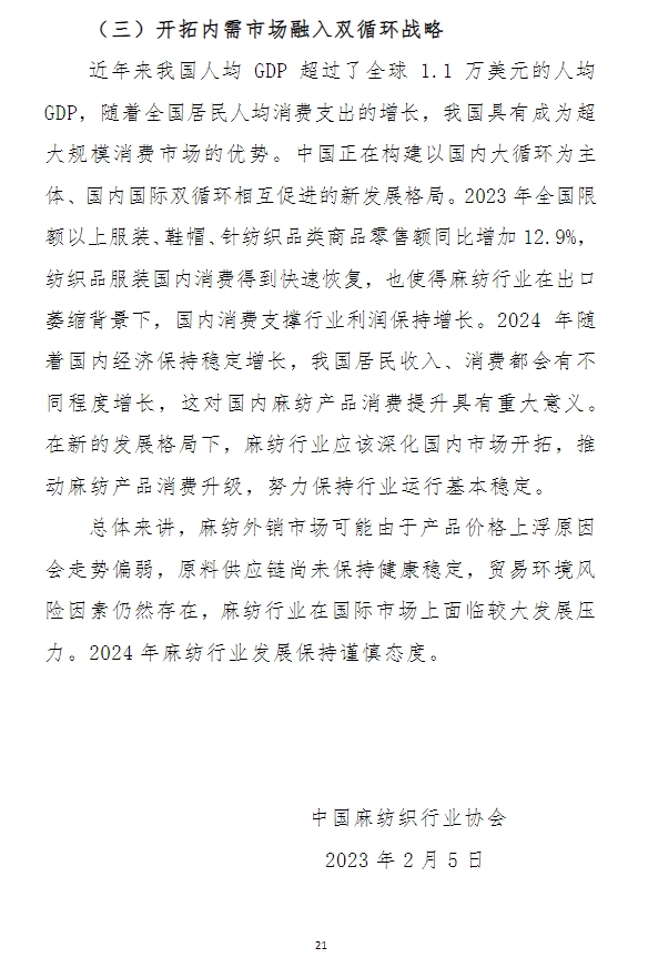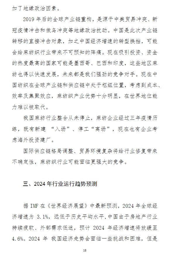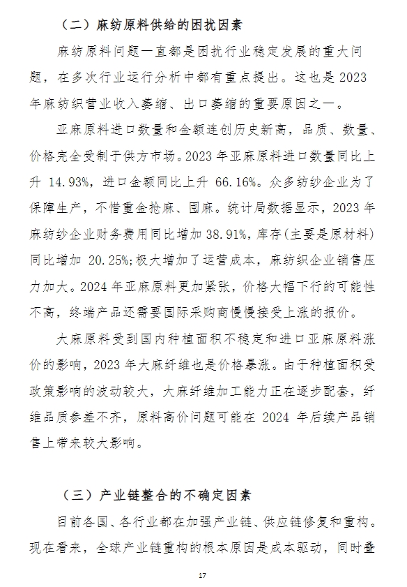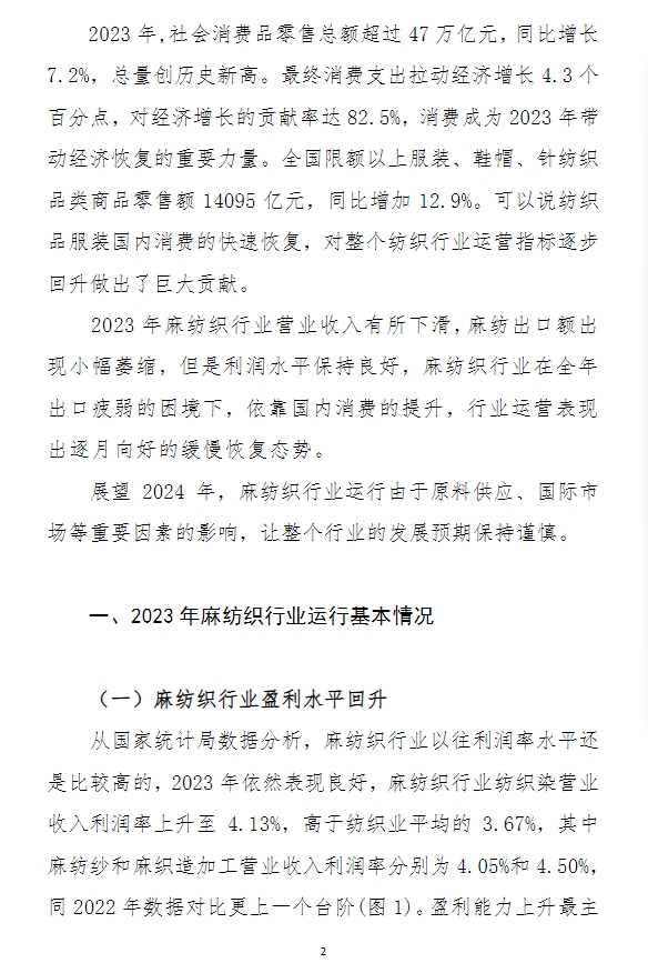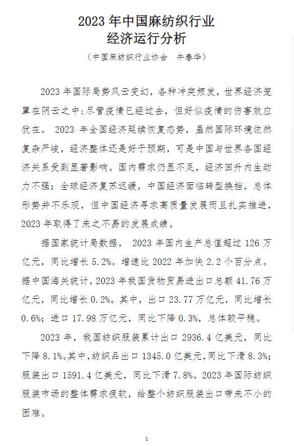 2023年中國麻紡織行業(yè)經(jīng)濟(jì)運(yùn)行分析