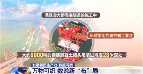 這也許是你不知道的紡織業(yè):在中國,萬物皆可“織”,甚至是海藻。眼下,一條世界產(chǎn)能最大的紡織服裝用海藻纖維生產(chǎn)線剛剛投產(chǎn),產(chǎn)能可達(dá)5000噸的“海上棉倉”正在建立。廢舊服裝、邊角料、塑料瓶,回收后都可以變廢為“絲”。8個(gè)廢舊塑料瓶抽出的滌綸絲,就可以織成一件男士T恤衫。國之大器中也有紡織的力量。港珠澳大橋海底隧道的施工中,需要把大約6000噸的鋼筋混凝土接頭吊裝進(jìn)海底28米深處,吊裝帶用的就是抗蠕工業(yè)絲;樹脂基碳纖維材料重量輕、剛度強(qiáng),用在了C919大飛機(jī)機(jī)身上。