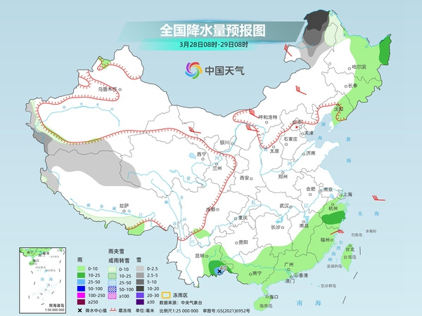 明天,江南南部、華南大部、云南東南部、臺灣島等地部分地區(qū)有小到中雨,其中,云南東南部等地部分地區(qū)有大雨。
