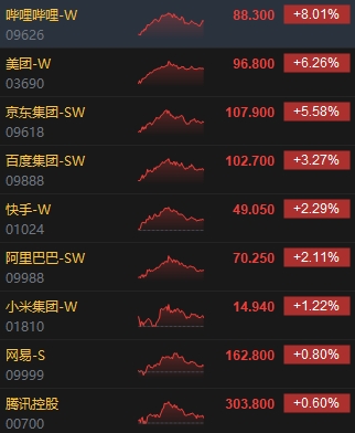 科網(wǎng)股領(lǐng)漲大市,嗶哩嗶哩漲超8%,美團(tuán)漲超6%,京東漲超5%,百度漲超3%。有消息稱(chēng),央行可能下場(chǎng)買(mǎi)債,“中國(guó)版QE”即將開(kāi)啟。有市場(chǎng)人士認(rèn)為,這意味著央行擴(kuò)表,遏制信用被動(dòng)收縮,利好國(guó)債市場(chǎng)。另外,從“成績(jī)單”來(lái)看,美團(tuán)扭虧為盈大賺超百億元,并創(chuàng)歷史新高;小米實(shí)現(xiàn)盈利翻番,騰訊控股(303.8, 1.80, 0.60%)、嗶哩嗶哩均實(shí)現(xiàn)逾30%增長(zhǎng)。