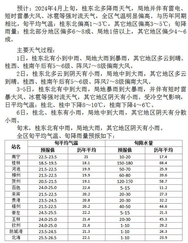 廣西:2024年4月上旬天氣預(yù)報
