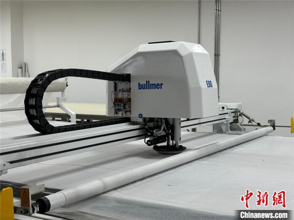 圖為自動(dòng)裁床機(jī)正在作業(yè)