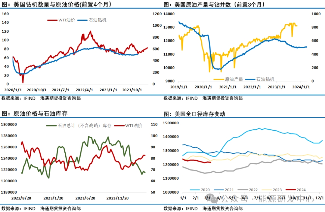以色列周日從加沙大幅撤軍,讓地緣風險略有降溫,對應的油價周一早盤低開,預計圍繞地緣方面油價的大幅波動仍將繼續(xù)。清明節(jié)假期油價繼續(xù)大幅沖高,布倫特原油(652, -3.30, -0.50%)最高漲至91.91美元,雖然周五油價從高點回吐了1美元左右,但布倫特原油較節(jié)前仍上漲1.96%,WTI原油也上漲1.69%。這樣的油價超出了年初時大部分機構的預測?;跉W佩克+減產(chǎn)對石油市場的影響,油價一季度反彈是一致性預期,對于油價反彈目標主流觀點判斷是能回升至80美元,高點大致目標85美元,如果有超預期表現(xiàn)可能會沖至90美元附近。但從3月開始,一系列地緣影響因素的升溫推動了油價漲勢。尤其是近期烏克蘭無人機對俄羅斯煉廠襲擊帶來的影響擴大,以及以色列襲擊伊朗大使館導致中東地緣局勢緊張推動了油價過去一周多來的一輪近7美元的大幅上漲,這先后推動WTI原油突破了85美元,布倫特原油突破了90美元。隨著原油重新回到高油價區(qū)間,過高的油價迫使美國能源部不得不暫時放棄回購原油補充戰(zhàn)略原油儲備計劃。