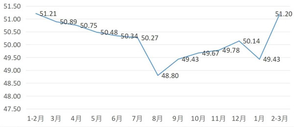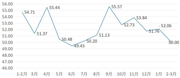 從管理者景氣指數(shù)來(lái)看,總指數(shù)中,2-3月管理者景氣指數(shù)為51.45,較上月下降1.94個(gè)百分點(diǎn);經(jīng)營(yíng)環(huán)境指數(shù)為50.97,較上月上升1.29個(gè)百分點(diǎn)。