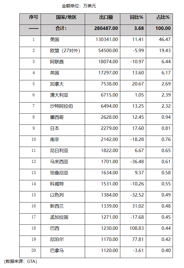 一、主要出口市場情況