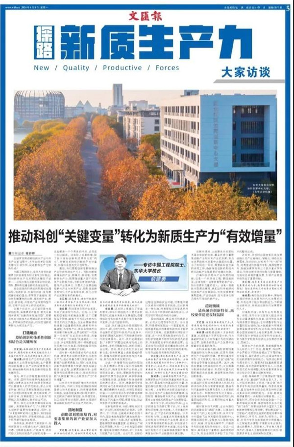 中國工程院院士、東華大學(xué)校長俞建勇日前在接受文匯報記者專訪時指出,推動新質(zhì)生產(chǎn)力發(fā)展的關(guān)鍵在于創(chuàng)新——應(yīng)突出強化創(chuàng)新的革命性突破,同時,要特別注重創(chuàng)新的系統(tǒng)性實現(xiàn)。