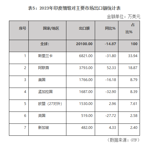 2023年,印度綢緞出口額為2.01億美元,同比下降14.87%。